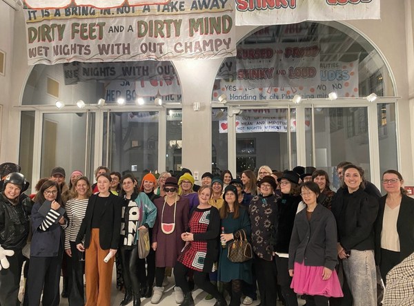 Aber damit nicht genug. Das Künstlerhaus als Gesamtkunstwerk trifft bei seiner Wiedereröffnung auf zeitgenössische Positionen aus Pop, Performance und Malerei: die Ausstellung Utopia. Chicks on Speed ist eine Zeitreise in Vergangenheit und Zukunft des einflussreichen Kunst-Kollektivs, das seit seiner Gründung an der Münchner Kunstakademie vor 30 Jahren internationale Strahlkraft besitzt und Kunst, Musik, Performance, Mode und Aktivismus kollaborativ und radikal verbindet. Parallel dazu öffnet Louise Giovanelli. A Song of Ascents einen Blick auf eine Protagonistin der jungen britischen Malerei, in deren leuchtenden Gemälden Bühnenbilder, Glanz und kollektive Rituale zwischen Verheißung und Abgrund oszillieren.