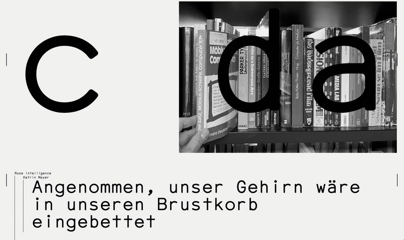 Die Arbeit „Rose Intelligence“ entstand im Rahmen eines Forschungsstipendiums des VALIE EXPORT Centers, Linz, und war in der Ausstellung „Cache. Feministische Ästhetiken und Archivprozesse“, Lentos Kunstmuseum Linz, 2024, zu sehen. Sie besteht aus 34 Büchern und einem Hörtext. Katrin Mayer liest an diesem Abend den Text; die Bücher werden auf einem Tisch präsentiert.
